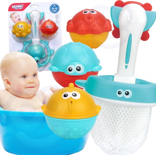 Zabezpečte počas kúpeľa vášho dieťaťa veľa zábavy s touto nádhernou sadou od WOOPIE. Dieťa môže loviť loptičky do siete alebo ich do nej hádzať. Táto sada nielen obohacuje zábavu počas kúpeľov, ale tiež rozvíja manuálne zručnosti a dieťaťu pomáha rozumieť okoliu, pričom zabezpečuje jeho pozornosť počas umývania.