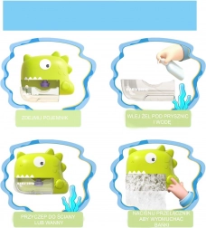 Obsluha je jednoduchá: nalejte 5–30 ml sprchového gélu, doplňte vodou v pomere 1:5, dobre premiešajte a spustite. Čím viac gélu, tým viac bubliniek. K dispozícii sú 3 režimy – bubliny s hudbou, stíšená hudba alebo vypnuté – pre ideálnu atmosféru pri kúpaní.