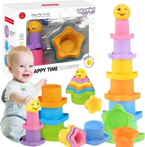 Každý pohárik má inú farbu a hviezdičkový tvar. Deti sa prirodzene učia triedeniu a porovnávaniu, rozvíjajú logiku aj zrakové vnímanie.