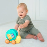 Vyberateľné „očká“ fungujú ako paličky. Deti môžu ťukať na farebné klávesy, trénovať rytmus, sluch a koordináciu oko–ruka.
