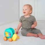 Odolná šnúrka umožní slimáka ťahať, kolieska zabezpečujú hladký pohyb. Podporuje prirodzený pohyb a samostatnú hru.