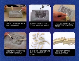 Zábava spočíva v odhaľovaní skamenelín a poskladaní kostry z objavených fosílií. Vďaka priloženým nástrojom na kopanie – kladivku, dlátku a kefke – môžu deti stráviť hodiny edukatívnej zábavy, podporovať sa v prírodovedných disciplínach a rozvíjať svoje praktické zručnosti aj myslenie.