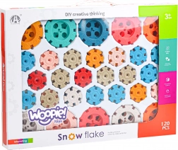 Stavebnica Snehové Vločky od Woopie je skvelá hračka, ktorá fascinujúcim spôsobom rozvíja detskú predstavivosť a logické myslenie. Vďaka unikátnemu dizajnu a otvoreným otvorom vo vločkách umožňuje spájacie dieliky nielen kolmo, ale aj pod uhlom, čo zvyšuje kreatívnu hranicu.