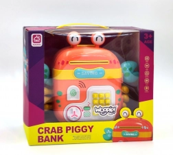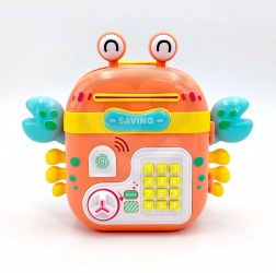 Tento farebný krab je viac než len pokladnička – je to interaktívny trezor, pokladnička a detský batoh v jednom. Deti si doň môžu ukladať mince, bankovky aj drobné poklady, zadať vlastné heslo a užiť si realistické prvky, ako je tlačidlová klávesnica, imitácia čítačky odtlačku a otočný gombík na otvorenie.