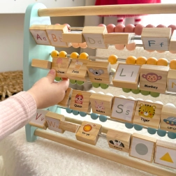 Drevené vzdelávacie počítadlo a abeceda ponúka unikátnu kombináciu zábavy a vzdelávania pre deti. Z jednej strany sa deti môžu učiť klasické počítanie na farebných korálkach, ktoré podporujú základné matematické zručnosti. Z druhej strany poskytuje abecedná doska s otočnými blokmi obsahujúcimi veľké a malé písmená, doplnená obrázkami, ktoré robia učenie abecedy hravou činnosťou, plnou zábavy a angažovanosti.