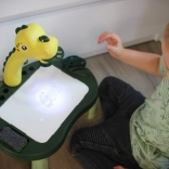 Projektor v tvare dinosaura premieta obrázky priamo na stôl, takže deti môžu jednoducho obkresľovať. K dispozícii je 24 predlôh na 3 diskoch pre nekonečnú porciu tvorenia.