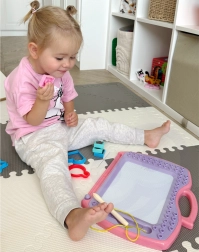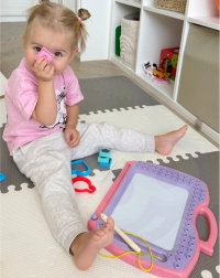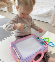 Objavte hravú cestu k učeniu a jemnej motorike. Woopie magnetická tabuľka umožňuje deťom bezpečne trénovať písanie písmen a číslic, skúšať prvé kresby a vyjadrovať svoju fantáziu – bez neporiadku a bez papiera. Jedným pohybom posúvača sa obrázok zmaže a zábava môže začať znova.