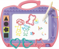 Súčasťou je pripevnený stylus, 4 tvarové stempelky a 4 šablóny. Podporujú presnosť, fantáziu a rozvoj jemnej motoriky.