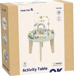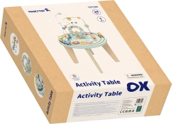 Objavte drevený montessori aktívny stolík TOOKY TOY, ktorý vďaka pestrým aktivitám zaujme deti na dlhé chvíle. Podporuje stojnú polohu, rozvíja jemnú motoriku, koordináciu oko–ruka, logické myslenie aj kreativitu. Súčasťou je motorický labyrint, triedička tvarov, ozubené kolieska a vláčik. Vyrobený z dreva s netoxickými farbami.