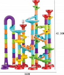 Kvalitné plastové diely sa ľahko spájajú a dobre držia. Guličky s priemerom cca 10 mm plynule prechádzajú priehľadnými aj farebnými prvkami. Zostavená dráha má kompaktné rozmery, takže sa zmestí aj do menších detských izieb.