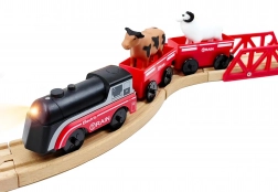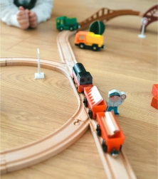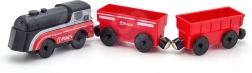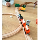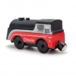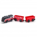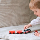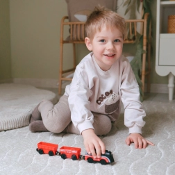 Súprava využíva magnetické spojenie vagónikov na rýchle a intuitívne zapojenie. Lokomotíva je napájaná jedinou batériou AAA (nie je súčasťou balenia), pri jazde rozsvieti svetlo a plynulo sa pohybuje ako skutočný vlak. Vďaka štandardnému rozchodu je kompatibilná s väčšinou drevených tratí (šírka koľaje cca 4 cm, šírka osičky cca 2,5 cm) – skvele doplní sety IKEA, Brio a ďalšie.