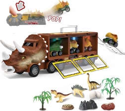 Náš dinosaurie nákladiak je skutočne neuveriteľný a ideálny pre každé dieťa, ktoré miluje dinosaury a autá. Dieťa môže ponoriť do fantazijného sveta dinosaurov a zažiť mnoho dobrodružstiev. Vo vnútri veľkého nákladiaku sa nachádzajú 3 malé dinosaurie autíčka. Sada obsahuje aj odpaľovač, ktorý pridá na zábave. Stačí umiestniť, kliknúť a vystreliť!