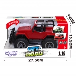 Terénne auto Jeep od značky WOOPIE ponúka malým vodičom hodiny zábavy. Toto auto je vyrobené z plastu a má gumové pneumatiky, ktoré zabezpečujú dobrú priľnavosť. Je vybavené zvukovými a svetelnými efektmi, ktoré robia hru veľmi realistickou. Pohon friction umožňuje, aby auto išlo samo iba jednoduchým postrčením dopredu.