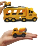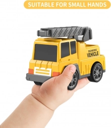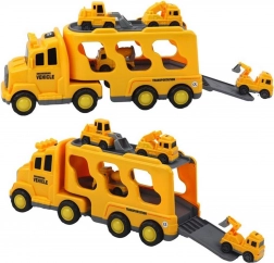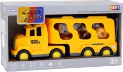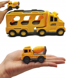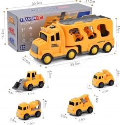 Objavte pestrý svet cestnej pomoci a stavby so setom WOOPIE. Veľká žltá transportná súprava odvezie a uskladní všetky menšie autíčka – bágrovaník, miešačku, žeriav a buldozér. Vďaka setrvačnému pohonu sa menšie stroje rozbehnú jednoduchým postrčením, svetlá a zvuky dodajú hre realistický zážitok.