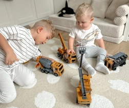 S touto sadou môžu deti objavovať rôzne stavebné činnosti a rozvíjať svoju predstavivosť. Obsahuje šesť veľkých vozidiel, každé s pohyblivými časťami a realistickými detailmi, ktoré napodobňujú skutočné stavebné stroje.