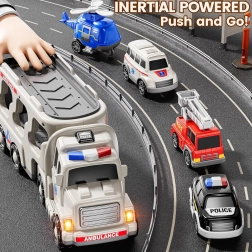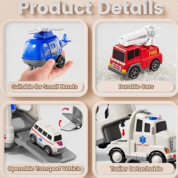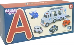 Veľké transportné vozidlo pojme hasičské auto, policajné vozidlo, policajný vrtuľník a sanitku. Ideálne na nácvik rôznych záchranných scenárov.