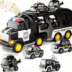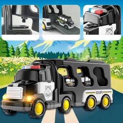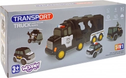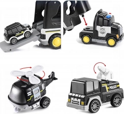 Objavte akčný svet polície s veľkou prepravnou súpravou WOOPIE. Deti ľahko naložia miniautá na plošinu a vyrazia do akcie – od cestnej hliadky cez leteckú podporu až po zásahy s vodným delom. Hra je vďaka svetelným a zvukovým efektom ešte realistickejšia a zaujme malých nadšencov na dlhé hodiny.