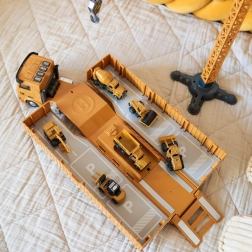 Tento komplexný set podnecuje fantáziu, kreativitu a rozvíja koordináciu ruka–oko. Deti si postavia vlastnú stavbu, riadia prevádzku pomocou kužeľov a značiek a s pomocou žeriava presúvajú náklad presne tam, kde je potrebné. Veľké nákladné auto slúži ako základňa s rozkladacou platformou, do ktorej ľahko uložíte všetky vozidlá aj doplnky.