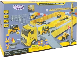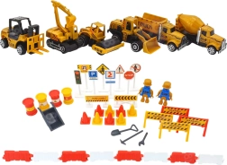 Súčasťou balenia je 1 veľké vozidlo a 6 malých stavebných strojov v kombinácii kovu a plastu, v živých farbách. Praktická vystreľovacia rampa dodá hre dynamiku, zatiaľ čo bohatá sada doplnkov pomôže vytvoriť realistické stavenisko.