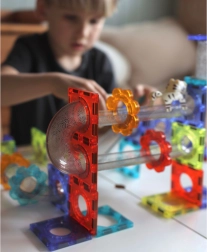 Magnetické komponenty umožňujú jednoduché a stabilné spojenie jednotlivých prvkov, čo deťom poskytuje rôznorodé zážitky zo stavania.