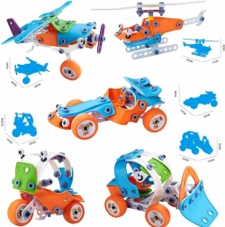 Táto súprava obsahuje 118 dielov, ktoré umožnia vytvorenie rôznych vozidiel, ako sú buldozér, helikoptéra, lietadlo alebo motokára. Pomáha rozvíjať kreativitu a manuálne schopnosti detí, čo im umožňuje objavovať svet stavebníctva a dizajnu s nesmiernou spokojnosťou a radosťou.