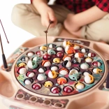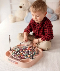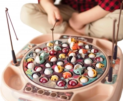 Obľúbená zručnostná hra rybolov v modernom prevedení. Po zapnutí sa doska s rybkami pomaly otáča v rytme hudby a niektoré rybky sa otvárajú – v tej chvíli je správny čas ich uloviť pomocou prúta. Jasné farby a dynamická hra okamžite upútajú pozornosť detí a podporia ich zdravú súťaživosť.