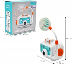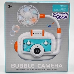 Stroj na farebné bubliny v tvare fotoaparátu od značky Woopie je skvelou hračkou pre deti. Tento fotoaparát ponúka nielen fúkanie bublín, ale aj svetelné efekty, ktoré vyzerajú ako blesk, ventilátor, ktorý bubliny posiela ďalej, a príjemnú melódiu pre ešte zábavnejšie chvíle. Deti sa môžu hrať na fotografovanie a potom skákať za bublinami spoločne. Súčasťou je tiež nádobka na bublifuk a pútko, aby ste si mohli fotoaparát zavesiť na krk.