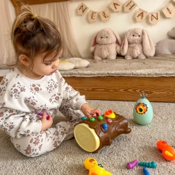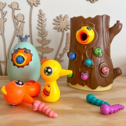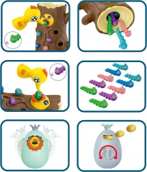 Hra spočíva v kŕmení hladného kuriatka červíkmi, ktorí sú ukrytí v kmeni stromu. Dieťa používa magnetické zobáky ďatľov na „chytanie“ červíkov a prenášanie ich ku kuriatku. Zábava vyžaduje presnosť a koncentráciu, vďaka čomu si deti môžu precvičovať svoju manuálnu zručnosť a zároveň sa výborne zabaviť. Po ukončení hry možno červíkov vysypať z kmeňa a pripraviť všetko na ďalšie kolo.