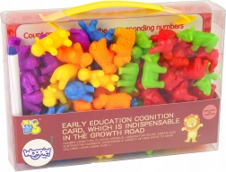 Vzdelávacia súprava Zvieratá od značky WOOPIE ponúka jednoduchú a efektívnu pomôcku pre výučbu i zábavu. Hra spočíva v matematických úlohách pomocou kariet so zadaniami za využitia figúrok a fixky. Hra podporuje nauku počítania a rozvoj farebného rozpoznávania pomocou zábavy, čo je skvelá alternatíva k tradičnému učeniu!