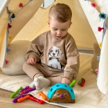 Ježko je ľahký, odolný a bezpečný pre deti od 18 mesiacov. Všetky komponenty sa ukladajú dovnútra tela ježka, takže sa nič nestratí a hračka je pripravená na cesty, domov aj do škôlky.