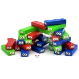 Veselé farby a „očka“ na blokoch deti bavia. Veža je vysoká približne 15 cm a široká 8 cm – ľahko ju zbalíte na cesty.