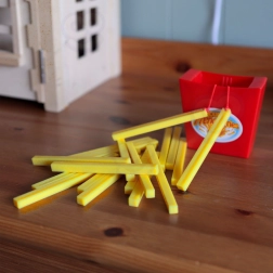 - Kelímok na hranolky, sada hranoliek (vrátane dvoch „zlých“ hranoliek)