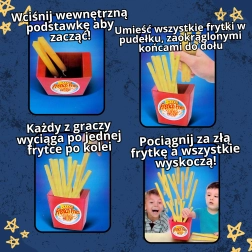 Obsah balenia: kelímok na hranolky, sada hranoliek (vrátane dvoch „zlých“ hranoliek, ktoré spustia vyskočenie všetkých).
