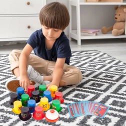 Rýchle usporiadanie čapíc podľa vzoru rozvíja jemnú motoriku u detí.