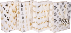 Štýlová vianočná darčeková taška vo veľkosti S na rýchle a elegantné balenie drobných darčekov. Vďaka kompaktným rozmerom a pevnému papieru je ideálna na kozmetiku, doplnky či menšie prekvapenia. Vyberte si sviatočný motív a užite si ľahké a krásne balenie darčekov bez strihania a lepenia. Odolný papier, praktické rozmery a vianočný dizajn potešia na prvý pohľad.