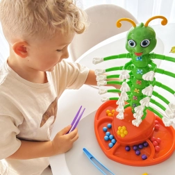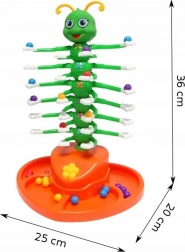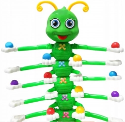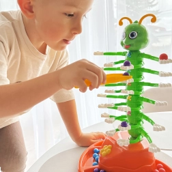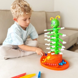 Roztočte zábavu s tanečnou húsenicou od značky WOOPIE. Deti sa pomocou priložených pinziet snažia pokladať guličky na pohybujúce sa platformy, čo trénuje trpezlivosť, sústredenie a presnosť. Vďaka jasným farbám je hra intuitívna a pútavá pre malých hráčov.