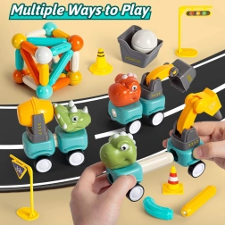 Súčasťou sú roztomilé dinosaurové autá, ktoré obohacujú zábavu a prinášajú nový rozmer do stavebníctva.