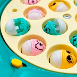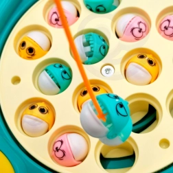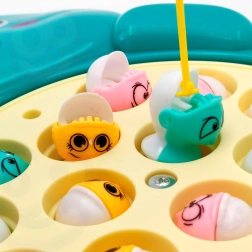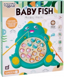 Vsadíte na rýchlosť, postreh a presnosť? Zelený dinosaurus ukrýva rotujúci rybníček plný farebných rybičiek, ktoré sa otvárajú a zatvárajú. Vašou úlohou je pomocou prúta uloviť čo najviac rybičiek skôr, ako sa kolo skončí – zábavná výzva pre malých aj veľkých rybárov.
