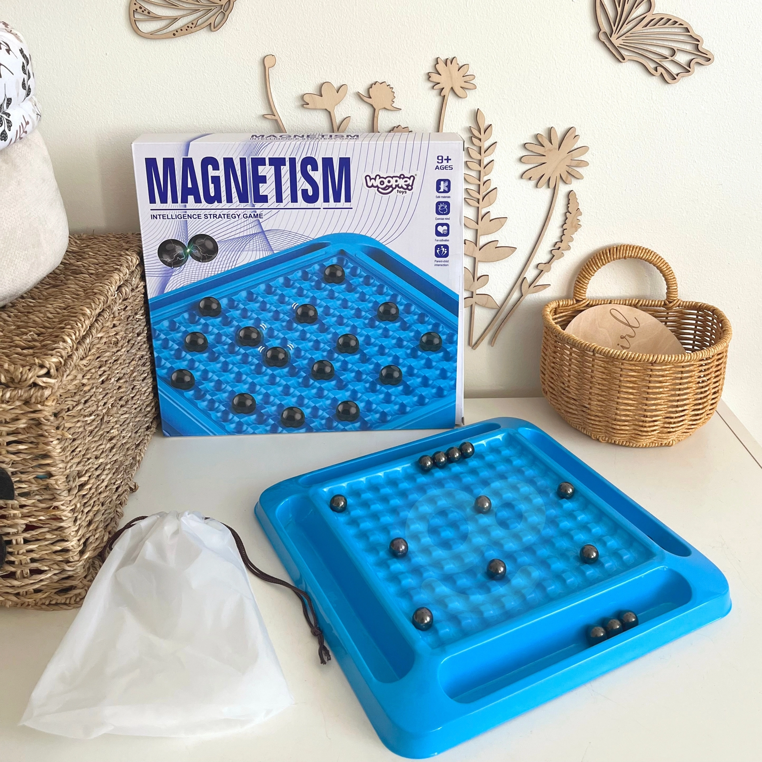 Múdra rodinná hra Woopie Magnetické guľôčky preverí trpezlivosť, presnosť aj stratégiu. Cieľom je čo najrýchlejšie sa zbaviť všetkých guľôčok – ale pozor, magnety robia nečakané veci! Hra prináša napínavú a dynamickú rozmanitosť, rozvíja jemnú motoriku, logické myslenie a učí základné princípy magnetizmu. Skvelá zábava pre deti aj dospelých až v 4 hráčoch.