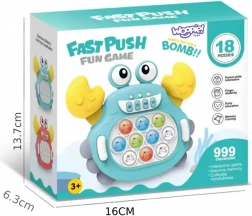 Elektronická hračka Pop It Krab je skvelým spôsobom, ako rozvíjať myseľ, manuálnu zručnosť a koordináciu u detí. Vďaka svojmu kompaktnému prevedeniu ju môžete vziať kamkoľvek. Hračka je určená pre deti od 3 rokov a ponúka až 999 úrovní, ktoré poskytnú množstvo zábavy aj pre dospelých.