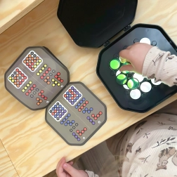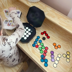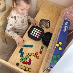 Objavte múdro navrhnutú hru, ktorá spája logické výzvy s farebnou kreativitou. Deti skladajú priehľadné kotúčiky podľa kariet so vzormi a vďaka podsvietenej doske sledujú, ako sa farby vrstvujú a miešajú. Hra prirodzene rozvíja priestorovú predstavivosť, koordináciu oko–ruka a učí plánovať kroky dopredu.