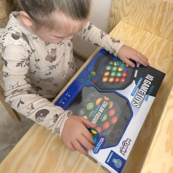V balení nájdete 50 vzorov od ľahkých po náročné. Kompaktné a odolné prevedenie sa hodí do detskej izby aj do batohu na cesty. Stačí vybrať kartu, zapnúť podsvietenie a začať skladať – úspech príde, keď vzor na doske presne sedí s kartou.
