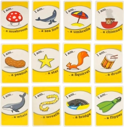 Karty s jednoduchými anglickými nápismi podporujú rozširovanie slovnej zásoby a porozumenie. Deti sa prirodzene učia pri hádaní a kladení správnych otázok.