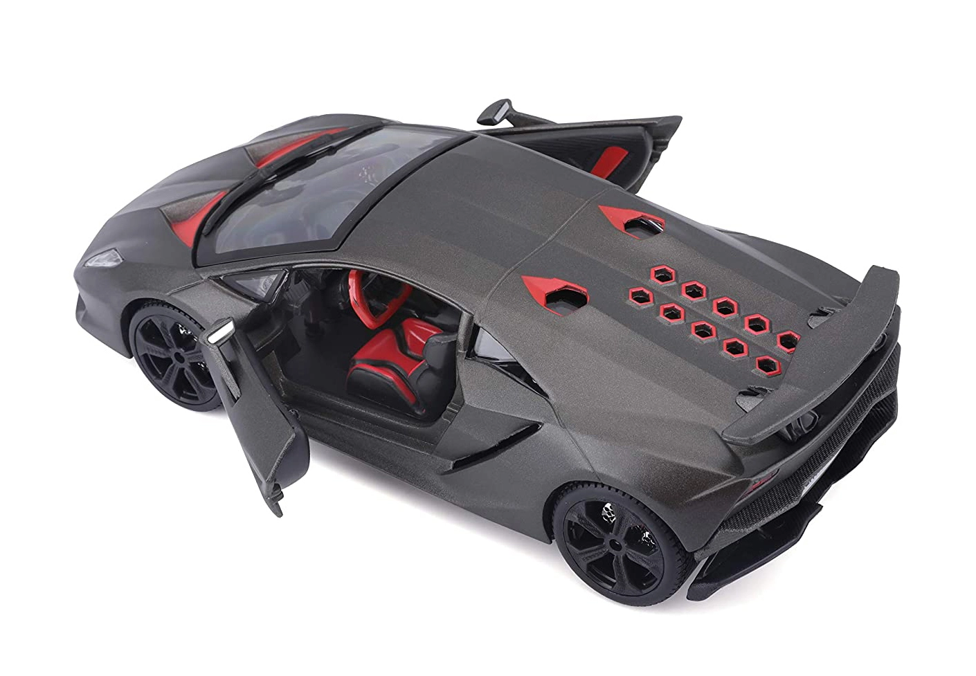 Prezrite si červeno-čierny kokpit s precíznymi detailmi sedadiel, palubnej dosky a volantu – ideálne na výstavku aj hranie.