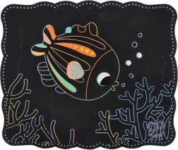 Jemným škrabaním sa pod čiernou vrstvou objavujú dúhové farby – bez neporiadku, len s jedným nástrojom.