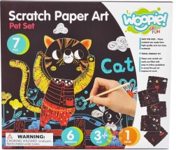 Kreatívna sada škrabacích obrázkov WOOPIE ART&FUN prináša deťom jednoduchý a zábavný spôsob, ako tvoriť pôsobivé farebné ilustrácie. Stačí vziať drevený stylus a jemným škrabaním odkrývať dúhové farby pod čiernou vrstvou. Deti si užijú prekvapenie z postupne sa objavujúcich odtieňov a motívov.