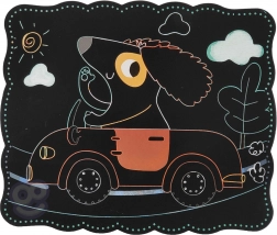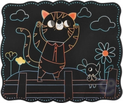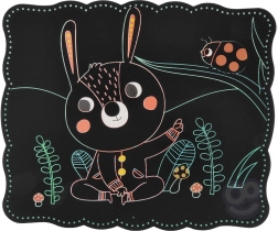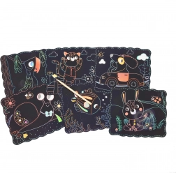 V balení nájdete 6 škrabacích kartičiek so zvieratkami – mačka, pes, slimák, králik, rybka a papagáj – a drevený stylus. Vďaka praktickému obalu so zapínaním možno sadu ľahko vziať do auta, reštaurácie aj na dovolenku. Aktivita podporuje jemnú motoriku, trpezlivosť a tvorivosť.