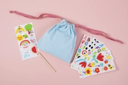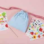 Deti môžu navrhnúť vlastnú tašku pomocou pestrých nálepiek a rozvíjať svoju kreativitu.