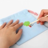 Sada je ideálna pre deti od 4 rokov, ktoré milujú tvorenie a dekorácie. Ľahučké textilné vrecko so sťahovaním možno ozdobiť pestrofarebnými písmenami, číslami a veselými motívmi kvetov či zvieratiek. Vďaka jednoduchému postupu si deti ľahko vytvoria originálne vrecko na drobnosti do škôlky, na krúžky alebo ako darčekové vrecúško.