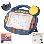Detská magnetická kresliaca tabuľka WOOPIE prináša nekonečnú porciu kreatívnej zábavy bez neporiadku. Podporuje písanie, kreslenie a rozvoj jemnej motoriky. Pomocou posuvnej gumy obrázok ľahko zmažete a môžete začať odznova. Súčasťou je stylus, 4 pečiatky a multifunkčné zvukové tlačidlá s efektmi, pesničkami, elektronikou, anglickou abecedou a bubnom. Vďaka praktickému madlu a výklopným nožičkám je tabuľka ideálna na cesty aj na stôl.